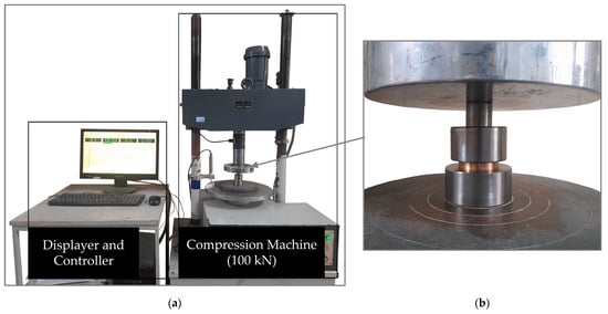 The machine used in this axial extraction test is the MARUI testing system MIS-225-1-16 (MARUI & Co., Ltd., Osaka, Japan), which allows axial loading with a 100 kN maximum value (as shown in Figure 4). Based on this testing equipment and the standardized procedures in determining coefficient of friction through static friction limits [,], the axial extraction test in this research was executed.