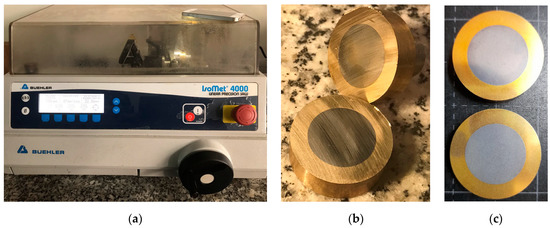 IsoMet 4000 linear precision saw (a) was used to cut the fit (b) before the preparing processes of etched samples (c).