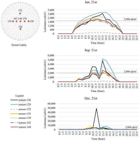 Luminance Variation of the Selected Sensors on 21 June, 21 September, and 21 December.