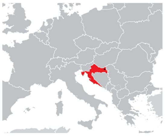 Croatia’s position in Europe (Osijek is marked with a black dot). Source: authors, 2021.