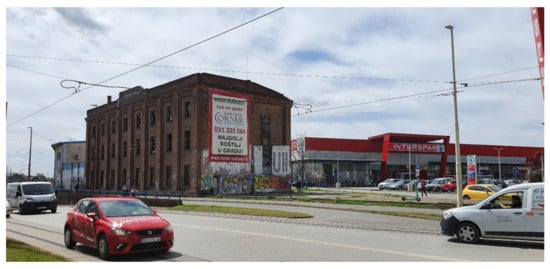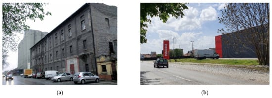 In addition, historical industrial areas are usually located in today’s city centers. As such, they tend to be revitalized as industrial heritage to contribute to the city sustainability and identity []. However, there are also negative examples of abandoning historical industrial areas, which are then devastated or turned into brownfields [].