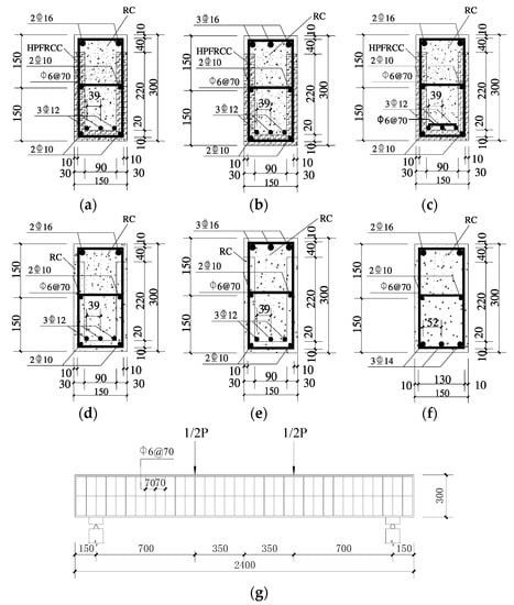 High-performance fiber-reinforced cement composites (HPFRCC) are materials known for their high ductility and durability, exhibiting characteristics such as tensile strain hardening and microcrack development [,]. In a study conducted by Siva et al. [], it was demonstrated that HPFRCC materials have the ability to enhance the flexural load capacity of beams, delay the yielding of tensile reinforcement, restrict crack propagation, and improve beam ductility.