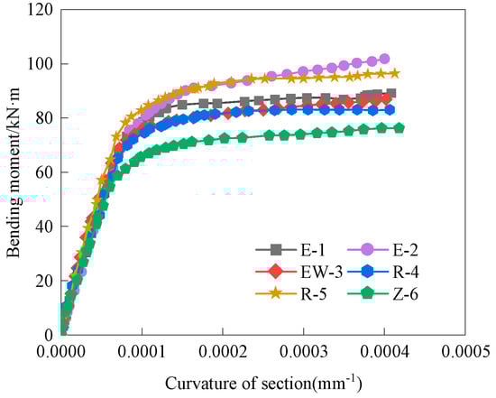 The bending moment–section curvature curves of the six specimens were shown in Figure 11.