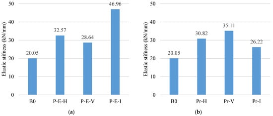 Elastic stiffness of beams in (a) group G1 and (b) group G2.