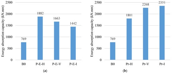 Energy absorption capacity of beams in (a) group G1 and (b) group G2.