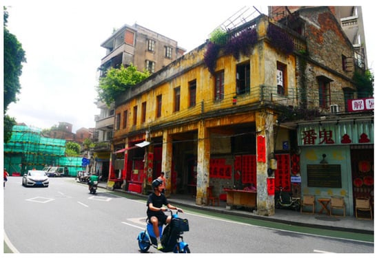 - Yang, W.; Qi, D.J.; Rui, L.; Wei, L. Conservation and Reuse of Historic Industrial Building in Historic Neighborhood Area: Case Study of Conservation Planning for the Neighborhood Area of the Nafeng Ancient Kiln in Chancheng District of Foshan. Archit. J. 2009, 2009, 77–79. [Google Scholar]