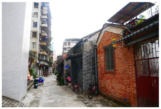 - Hua, H.L.; Zheng, J. The Renewal and Morphological Characteristics of Historic District Under the Application of Morphological Regionalization Method: Case of Pinzijie Historic District of Foshan. Huazhong Archit. 2022, 40, 74–79. [Google Scholar]