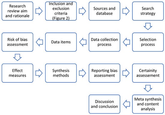 A systematic review serves as a rigorous, repeatable, and unbiased research method for analysing existing studies to define the current knowledge boundaries within a particular field and identify gaps for further exploration []. In this study, the PRISMA framework was applied, aiming to provide an extensive overview of the existing literature. This structured approach is especially useful for conducting thorough and systematic reviews of the literature in social science research []. This review process encompasses systematic searches of peer-reviewed sources, screening, critical evaluation, metadata extraction, and content analysis, as shown in Figure 1. Selection criteria focused primarily on articles directly relevant to the study topic, along with some studies on related themes due to their significant impact.