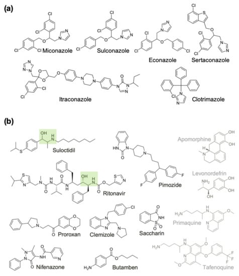 - Warrilow, A.G.; Parker, J.E.; Kelly, D.E.; Kelly, S.L. Azole affinity of sterol 14alpha-demethylase (CYP51) enzymes from Candida albicans and Homo sapiens. Antimicrob. Agents Chemother. 2013, 57, 1352–1360. [Google Scholar] [CrossRef] [PubMed]