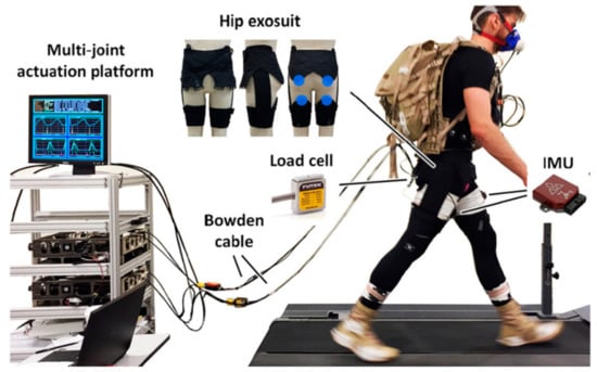- Lee, S.; Kim, J.; Baker, L.; Long, A.; Karavas, N.; Menard, N.; Galiana, I.; Walsh, C.J. Autonomous Multi-Joint Soft Exsosuit with Online Optimization Reduces Energy Cost of Loaded Walking. J. Neuroeng. Rehabil. 2018. under review. [Google Scholar] [CrossRef]