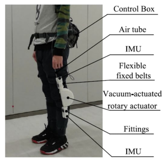 - Zhang, L.; Huang, Q.; Cai, K.; Wang, Z.; Wang, W.; Liu, J. A Wearable Soft Knee Exoskeleton Using Vacuum-Actuated Rotary Actuator. IEEE Access 2020, 8, 61311–61326. [Google Scholar] [CrossRef]