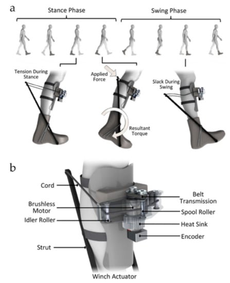 - Xia, H.; Kwon, J.; Pathak, P.; Ahn, J.; Shull, P.B.; Park, Y.L. Design of A Multi-Functional Soft Ankle Exoskeleton for Foot-Drop Prevention, Propulsion Assistance, and Inversion/Eversion Stabilization. In Proceedings of the 2020 8th IEEE RAS/EMBS International Conference for Biomedical Robotics and Biomechatronics (BioRob), New York, NY, USA, 29 November–1 December 2020; pp. 118–123. [Google Scholar] [CrossRef]