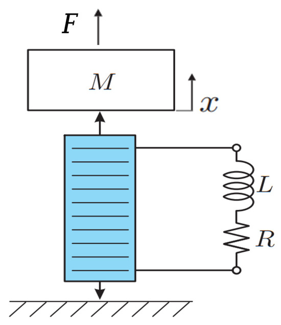 Consider the single degree of freedom (DoF) piezoelectric system shown in Figure 6, shunted in series on a resistor and an inductor ]. The related dynamics are governed by the following equations for the mechanical and electrical behaviors, respectively []: