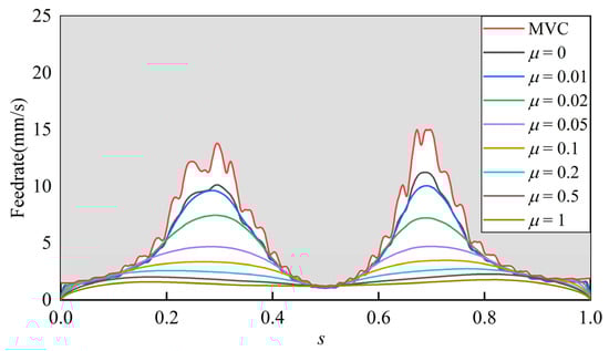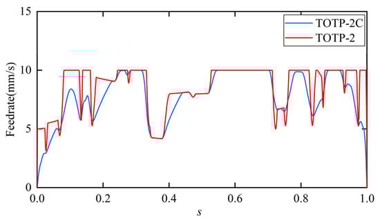 The comparison result of the feedrate along the star-shaped path with different methods.