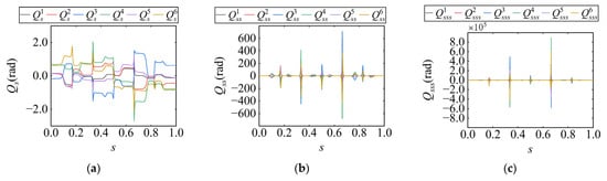 In the above, piecewise cubic splines were introduced to reconstruct the decision variables ,  and  in Equation (18). As a result, the original decision variables in the TOTP optimization model are replaced by the spline coefficient vectors , , , and . Therefore, the original TOTP model needs to be reformulated. The affine relationships between the decision variables and the spline coefficient vectors are incorporated into the optimization model, along with the continuity constraints. The resulting TOTP model is given by