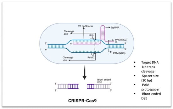 Thus, to mitigate the emergence of superbugs’ resistance with minimal negative impacts on humans or on the environment, CRISPR/Cas-based approaches have become a widely adopted, hopeful alternative to conventional approaches. In comparison with other DNA-based gene engineering techniques, CRISPR-Cas genome editing has been hailed as being simple, adaptable, effective, and lacking the need for any specific markers to identify the species of pathogenic bacteria. Despite this, it has the ability to precisely target a specific sequence with a single guide RNA (gRNA) and its associated protein (Cas). Typically, this system serves as an adaptive immunity, providing protection against foreign genetic material []. For superbugs, on the other hand, it has a different mechanism of action, acting as a transferable and integrative system to target antibiotic-resistant genes. It induces DSBs (double-strand breaks) within the DNA of resistant bacteria and transforms them into antibiotic-sensitive ones [].