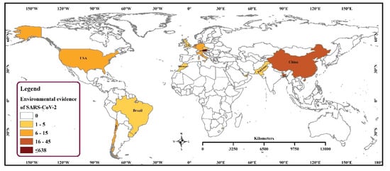 Spatial Distribution of SARS-CoV-2 RNA detected in environmental samples in the world.