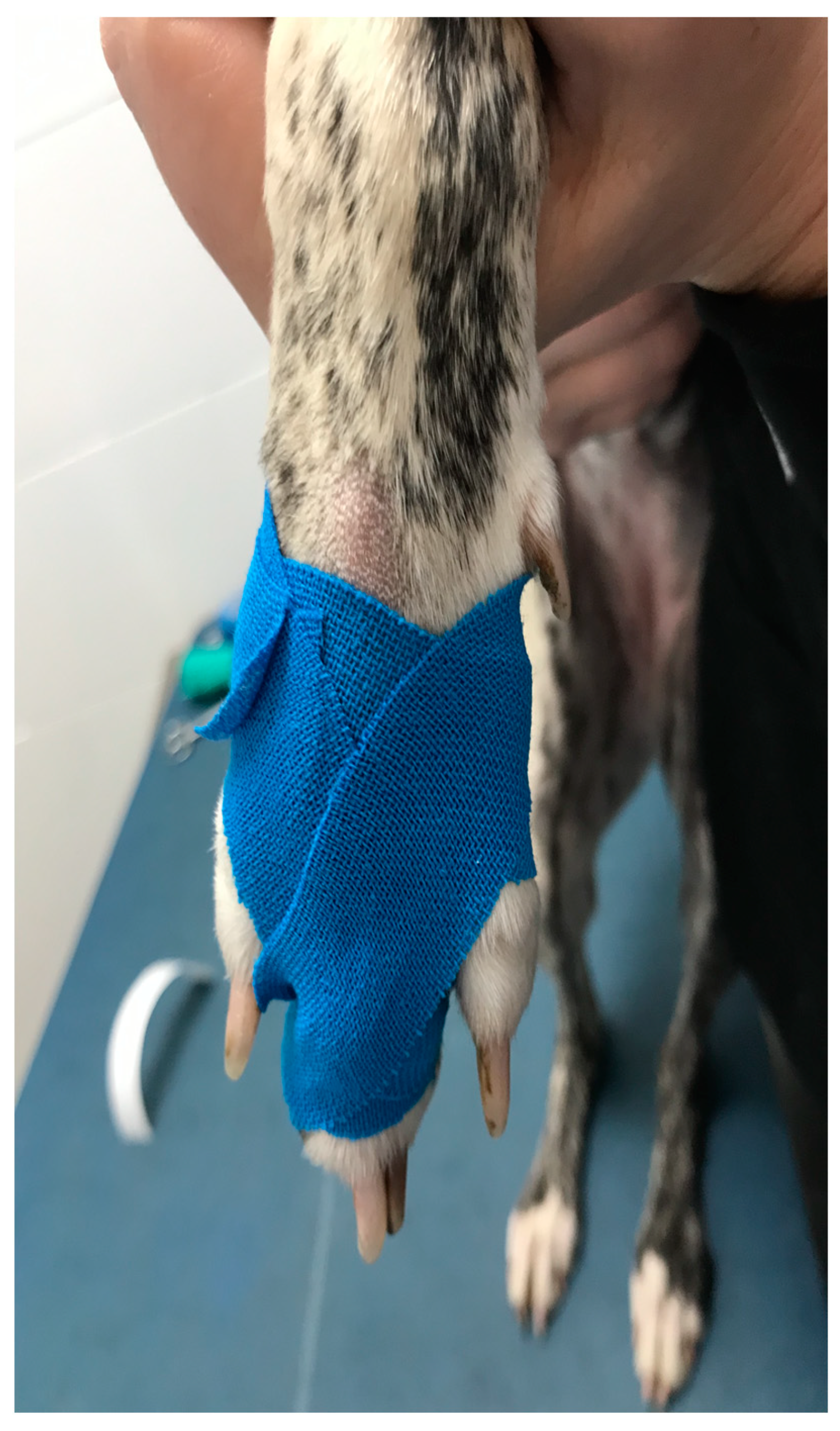 - Fowler, D. Distal limb and paw injuries. Vet. Clin. Small Anim. Pract. 2006, 36, 819–845. [Google Scholar] [CrossRef] [PubMed]