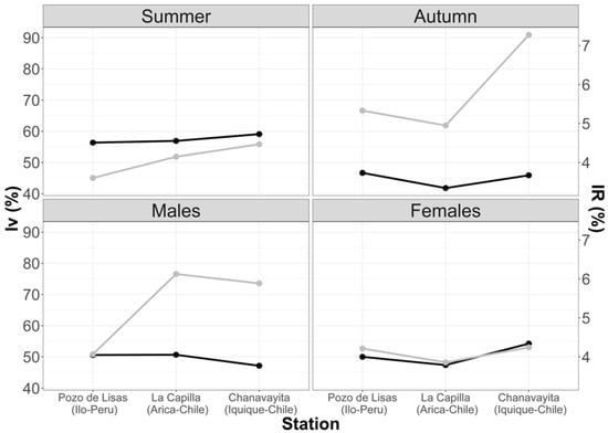 Fish captured in the Chanavayita area had a greater average standard length than in the La Capilla and Pozo de Lisas areas, with a difference of 9 and 6 cm, respectively. The sex ratio was higher for males in the three capture areas (Table 1).