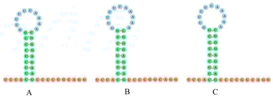 - Gruber, A.R.; Lorenz, R.; Bernhart, S.H.; Neuböck, R.; Hofacker, I.L. The vienna RNA websuite. Nucleic Acids Res. 2008, 36, W70–W74. [Google Scholar] [CrossRef]