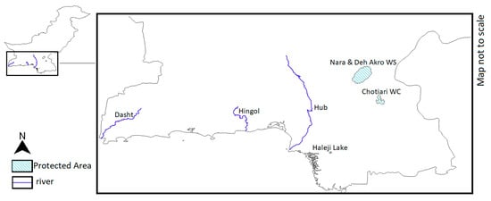 Crocodiles live along the three major rivers—Kaju, Sarbaz and Bahukalat. Three major water basins exist in the Gandou Protected Region boundaries—the Persian Gulf, Eastern Border basin and Central basin []. Almost half of the country’s renewable water resources come from the Persian Gulf. The upstream Sarbaz River has a running bed and few ponds; therefore, only a small population of crocodiles live there [].