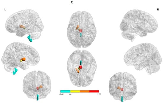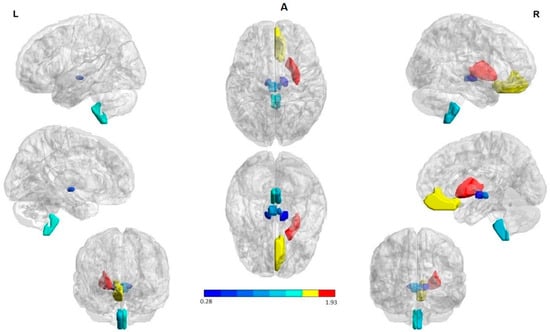 - Xia, M.; Wang, J.; He, Y. BrainNet Viewer: A network visualization tool for human brain connectomics. PLoS ONE 2013, 8, e68910. [Google Scholar] [CrossRef]