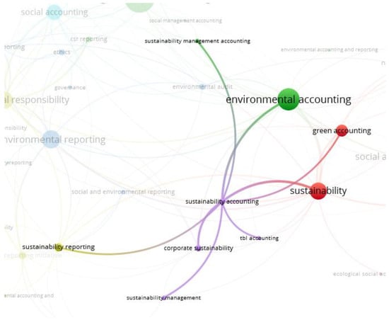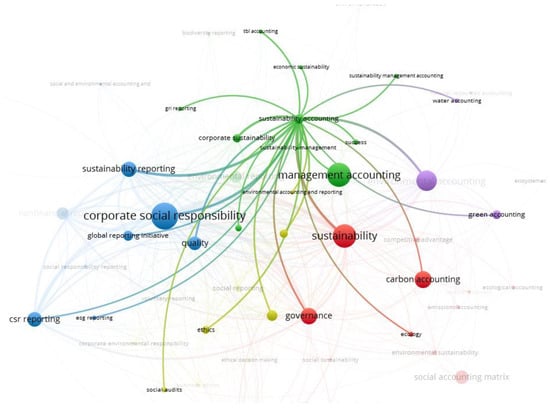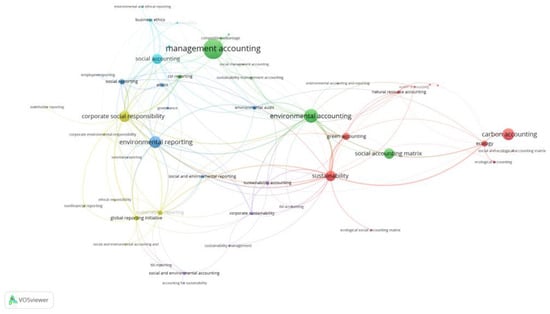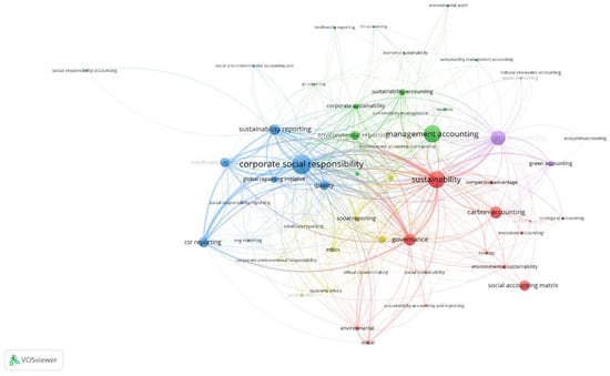 The relationships between keywords in the field of sustainability accounting were illustrated by a keyword co-occurrence map based on exported bibliographic data and created using the program VOSviewer_1.6.20. The creation of the maps consisted of two phases: