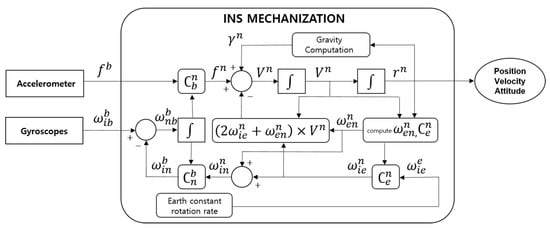 Block diagram of inertial navigation system (INS) mechanization (modified from []).