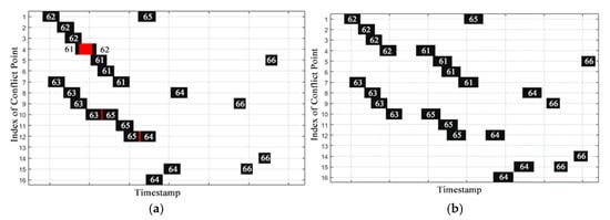 The procedures of conflict detection and resolution are introduced as follows (as shown in Figure 9):