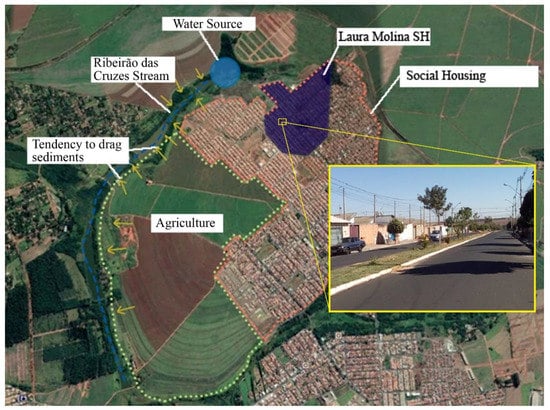 In this context, the importance of analyzing the potential of the neighborhood is associated with the unsustainable characteristics of urban insertion, which have contributed to the emergence and worsening of other influential problems in the population’s quality of life. Linked to inserting the subdivision in an area of environmental fragility, where agriculture was initially practiced, the overload to the water supply system; health and education services; critical conditions for urban mobility; the need to expand sewage collection, and water distribution networks are some of the problems that characterize Laura Molina as a project, which has had a significant impact on the natural and urban environment [,,,].