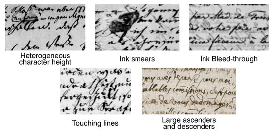 - Kumar, J.; Kang, L.; Doermann, D.; Abd-Almageed, W. Segmentation of handwritten textlines in presence of touching components. In Proceedings of the 2011 International Conference on Document Analysis and Recognition (ICDAR), Beijing, China, 18–21 September 2011; pp. 109–113. [Google Scholar]