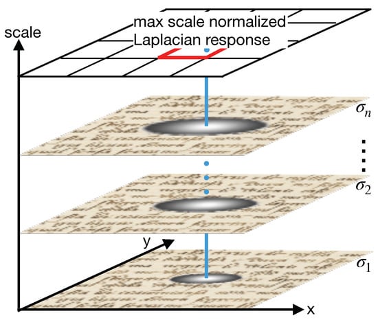 In scale-space representation, the amplitude of the Laplacian in Equation (3) decreases with scale. Based on this phenomena, automatic scale selection states that local extreme over scales of scale-normalized Laplacian