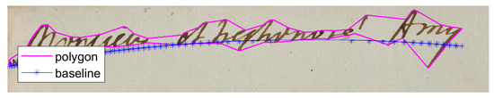 - Clausner, C.; Antonacopoulos, A.; Pletschacher, S. A robust hybrid approach for text line segmentation in historical documents. In Proceedings of the 2012 21st International Conference on Pattern Recognition (ICPR), Tsukuba, Japan, 11–15 November 2012; pp. 335–338. [Google Scholar]