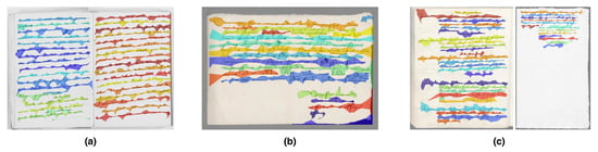 - Cohen, R.; Asi, A.; Kedem, K.; El-Sana, J.; Dinstein, I. Robust text and drawing segmentation algorithm for historical documents. In Proceedings of the 2nd International Workshop on Historical Document Imaging and Processing, Washington, DC, USA, 24 August 2013; pp. 110–117. [Google Scholar]