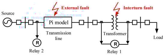 In this section, the faults that occur in transmission lines and transformers are tested by using the experimental setup. The difference current signals and transients generated from the experimental setup are detected and recorded for analysis with a wavelet. The experimental model is shown in Figure 2.