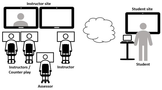 In the few reported cases of using VS for assessment [,], the sessions have been held on-site, not remotely, which was a pressing need. However, the learning objectives, reflecting the necessary competencies for safe and effective incident command are the same. In LS, students and instructors are in the same physical space. The instructors/assessors can watch the student move, observe (see and hear) when he/she talks, and then observe the actions of the persons the student talked to and to observe the actions taken, e.g., if the leadership and the communication is satisfactory in relation to the assessment. Testing how the instructors/assessors would manage this, to reliably assess the students’ performance in RVS, needed to be developed. This motivated the Pilot test, to explore the feasibility as well as test modes for transmitting to the instructors/assessors the necessary information to reliably assess the students.