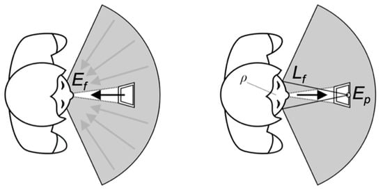 Knowing the face luminance, and assuming that skin can be approximated as a cosine reflector (Lambertian surface), we can calculate the face illuminance, Ef (Figure 1 left) as []: