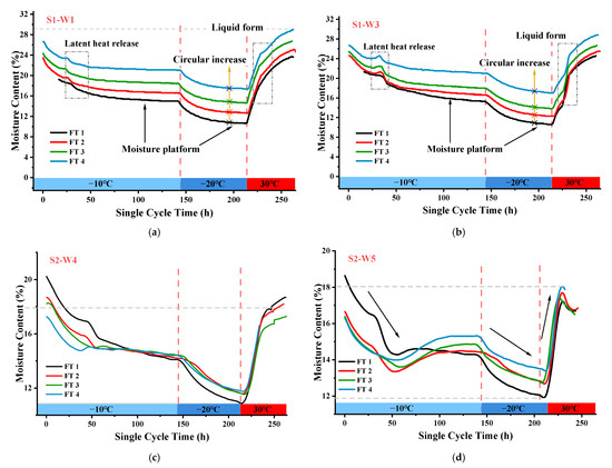 3.2. Moisture Content in the Slope during Freeze-Thaw Cycling