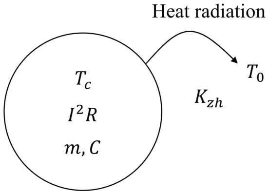 In Figure 4, the basic process of heat generation and dissipation by a conductor is presented, where the temperatures of the inner core and ambient are denoted by and , respectively. The physical processes of heat generation and heat dissipation by a conductor follow the law of energy conservation. The temperature rise of the conductor can be regarded as the difference between heat generation and dissipation, which can be expressed as: