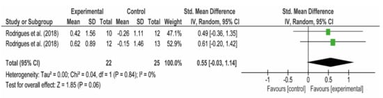 The effects of twelve weeks of exergames on the hamstring muscle cross-sectional area of community-dwelling older women. Note: The first line of Rodrigues et al. [] represents fallers, and the second line represents non-fallers. This forest plot was created via RevMan [].