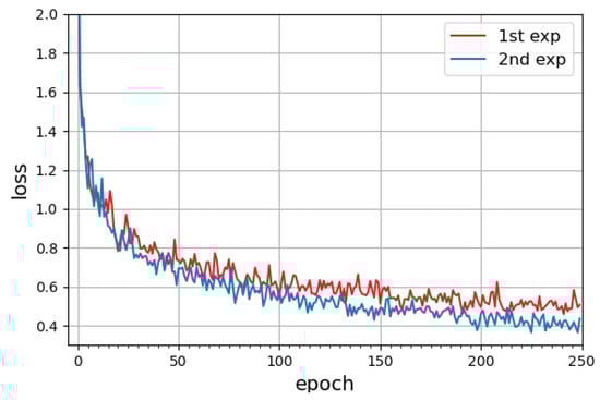 The values of the loss function, which combines classification, localization, and segmentation mask losses, equal 0.483 and 0.394, respectively, as a result of training with synthetic data. Figure 7 shows the plot of the loss function curves.