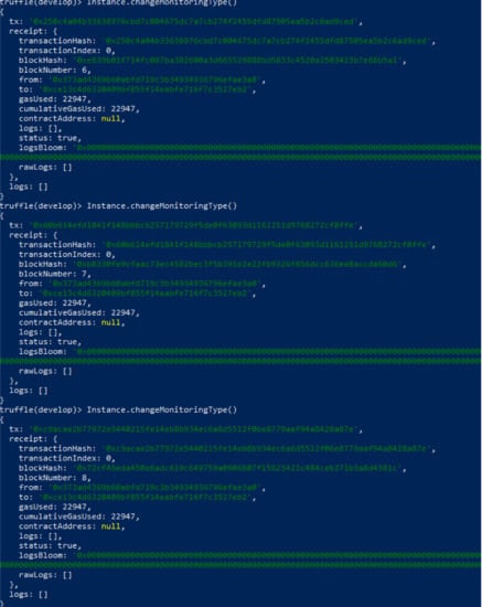 As the last experiment, we used the audit tool Mythril to assess the security of the developed smart contract. Mythril is a security analysis tool for Ethereum Virtual Machine bytecode. It detects security vulnerabilities in smart contracts built and uses symbolic execution and Satisfiability Modulo Theories (SMTs) solving and taint analysis to detect a variety of security vulnerabilities. This tool searches for pieces of code that could lead to security inconsistencies and can detect vulnerabilities in smart contracts for Ethereum and other platforms. Figure 8 presents a screenshot of the report generated by Mythril showing the result obtained.