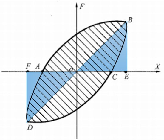 In this study, the seismic performance of five specimens was mainly evaluated using the energy dissipation coefficient. The specific results are listed in Table 4. The calculation diagram is shown in Figure 10. The sketch of the calculation of the energy dissipation coefficient and Equation (2) is as follows [].