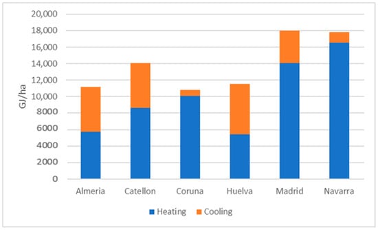 The data presented in this study illustrate that energy use in greenhouses in the EU varies considerably depending on the type of greenhouse, geographical area, and crop grown. In advanced greenhouse systems, heating is the dominant energy requirement and in some studies accounts for up to 99% of all energy inputs. In our view this needs more detailed research with more data points from accepted methodologies as 99% appears high. In any case, our review indicates that energy requirements for heating and cooling in energy intensive systems are so considerable that other energy inputs, such as fertilizers, are extremely minor. Indeed, it has been estimated that the heating and cooling of greenhouses represents 1.5% of Europe’s total energy consumption []. Methods of heating greenhouses vary throughout the EU; gas boilers are generally popular, as are air-unit heaters for small scale installations [], as well as cogeneration (Combined Heat and Power) in certain countries (mainly The Netherlands) []. In most cases, heating and cooling systems are powered by energy from fossil fuels but in recent years sustainable sources of heat, mainly geothermal, have been growing rapidly.