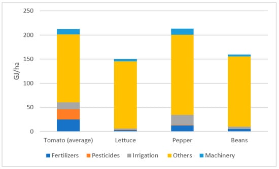 Energy consumption in low energy intensity greenhouse production in Spain (GJ/ha) (based on []).