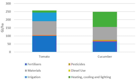 Energy inputs in high energy intensity tomato production systems (GJ/ha) (based on [,,]).