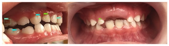 High-resolution, standardized, and single-tooth photographs require professional cameras, expensive macro lenses, and experienced photographers. From the community’s application point of view, it is impractical and cannot be obtained by normal people who want to use an application to check their teeth. A recent study by J. Kuhnisch, which used intraoral photos applying deep learning to diagnose tooth decay, achieved more than 90% agreement in the detection of caries. However, photographs are single-tooth photos taken with professional cameras and lenses (Nikon D300, D7100, and D7200, Nikon Micro 105-mm) []. Recently, there is one study in which YOLOv3 was used to detect dental caries via smartphone intraoral photos []. The study showed the mean average precision value (of 3 times of testing) of the YOLOv3 algorithm was 56.20%, which was lower than our study regarding cavitated caries detection (74%). The indirect comparison should be interpreted with caution since the two studies used two different datasets.