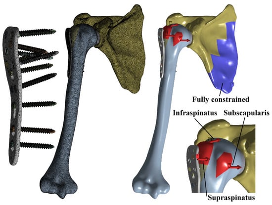 2.4. Numerical Modeling of Injured Shoulder Joint with Plate Fixation under Realistic Rotator Cuff Muscle Loading