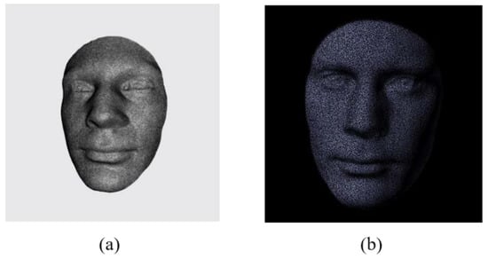 We have also scanned a human face called “Alex” with a 3D camera, and the 3D mesh of “Alex” is shown in Figure 8a, which consists of 49,272 meshes. In this case, there is no need to use back-face culling, because the data is the result from actual image scanning. We have calculated the CGH of “Alex”, and its holographic reconstructed image is shown in Figure 8b.