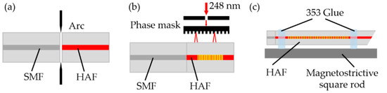 - Yang, M.; Dai, J.; Zhou, C.; Jiang, D. Optical fiber magnetic field sensors with TbDyFe magnetostrictive thin films as sensing materials. Opt. Express 2009, 17, 20777–20782. [Google Scholar] [CrossRef]